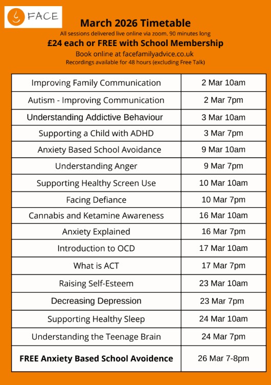 The evening is a new format, which has been planned specifically for parents and carers of Year 10 students. It will consist of a short presentation in the Theatre, followed by a series of 15 minute sessions on a variety of important topics – see below for details. There will only be time for you to attend three of these sessions, but the content of all sessions will be shared after the evening.