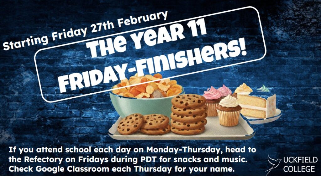 We had a fantastic first ‘Friday Finisher’ PDT session today attended by the vast majority of Year 11 students and look forward to welcoming more and more students to that reward session each week.