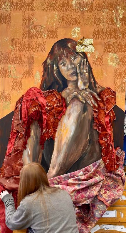 This huge portrait is created by our wonderfully talented A-Level student, Aurora.